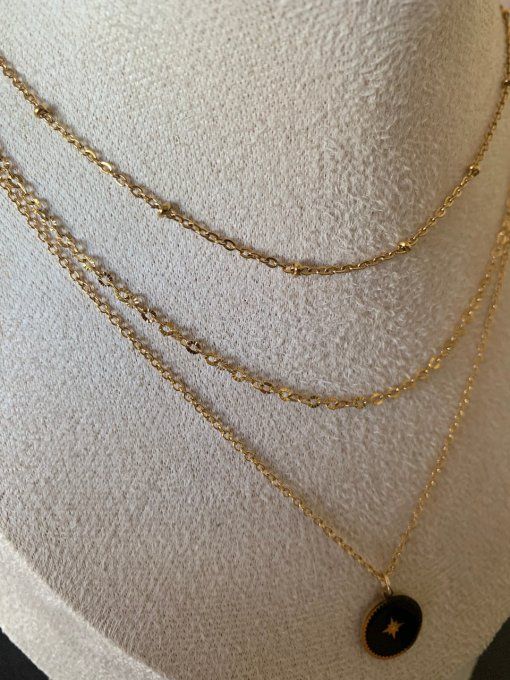 Collier composé de 3 chaines et pendentif en acier inoxydable doré.