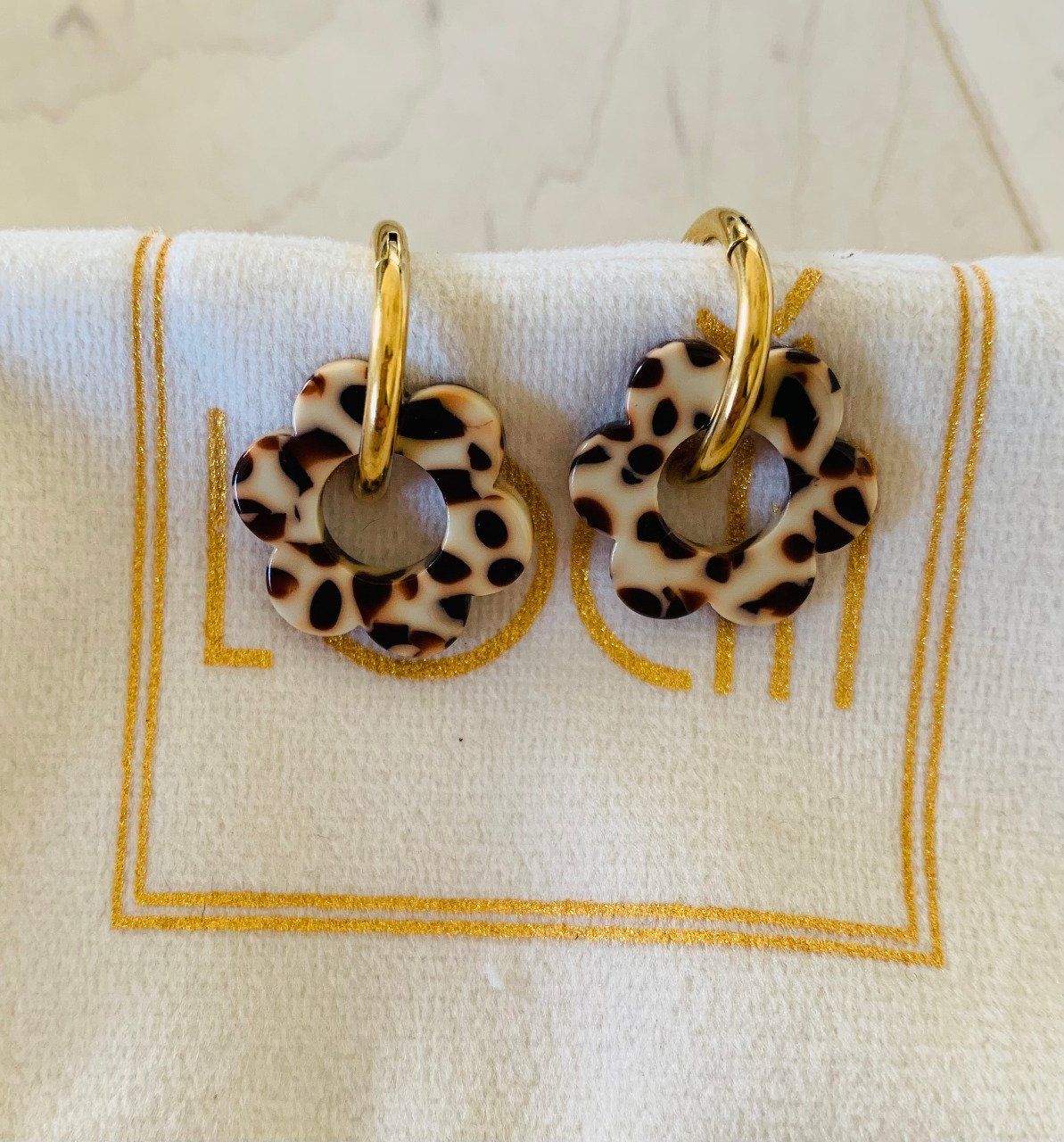 Boucles créoles en acier inoxydable ornée d'une breloque en forme de fleur.